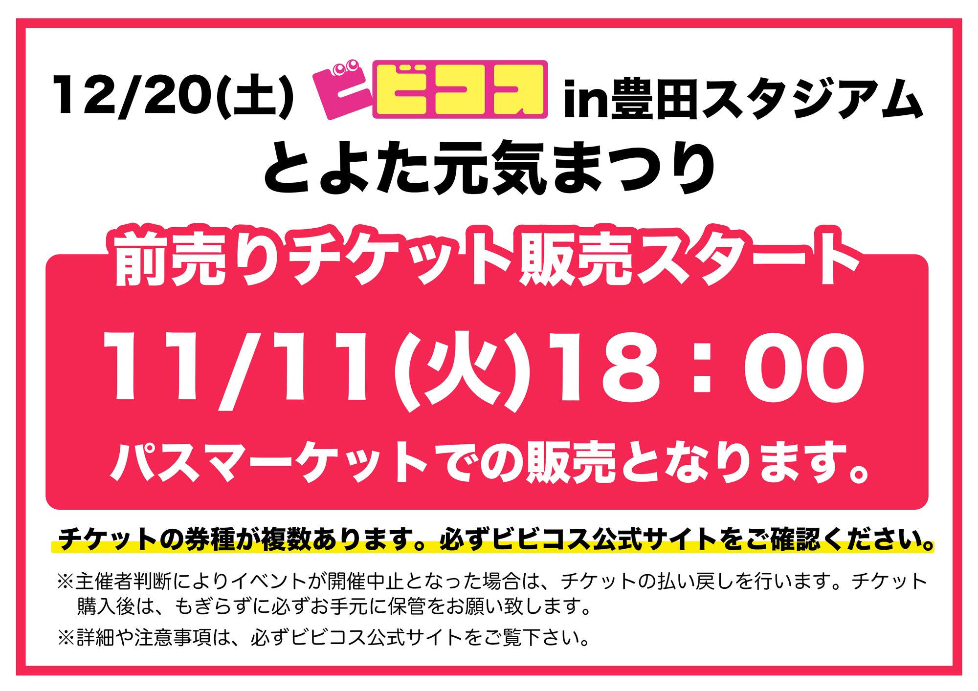 ※コスプレも撮影もされずステージ観覧のみされる方はビビコス参加チケットは必要ございません。「とよた元気まつり」入場チケット(500円)を現地にてご購入ください。