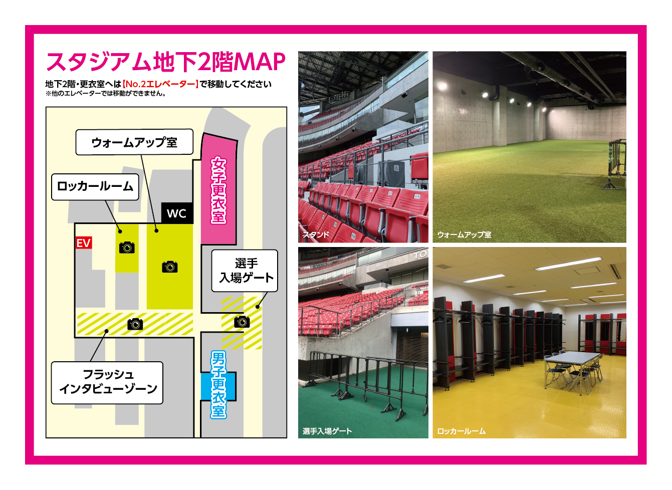 ビビコス参加者限定で、実際に使用されているウォームアップルームやロッカールーム、フラッシュインタビューゾーンなども撮影可能となります。