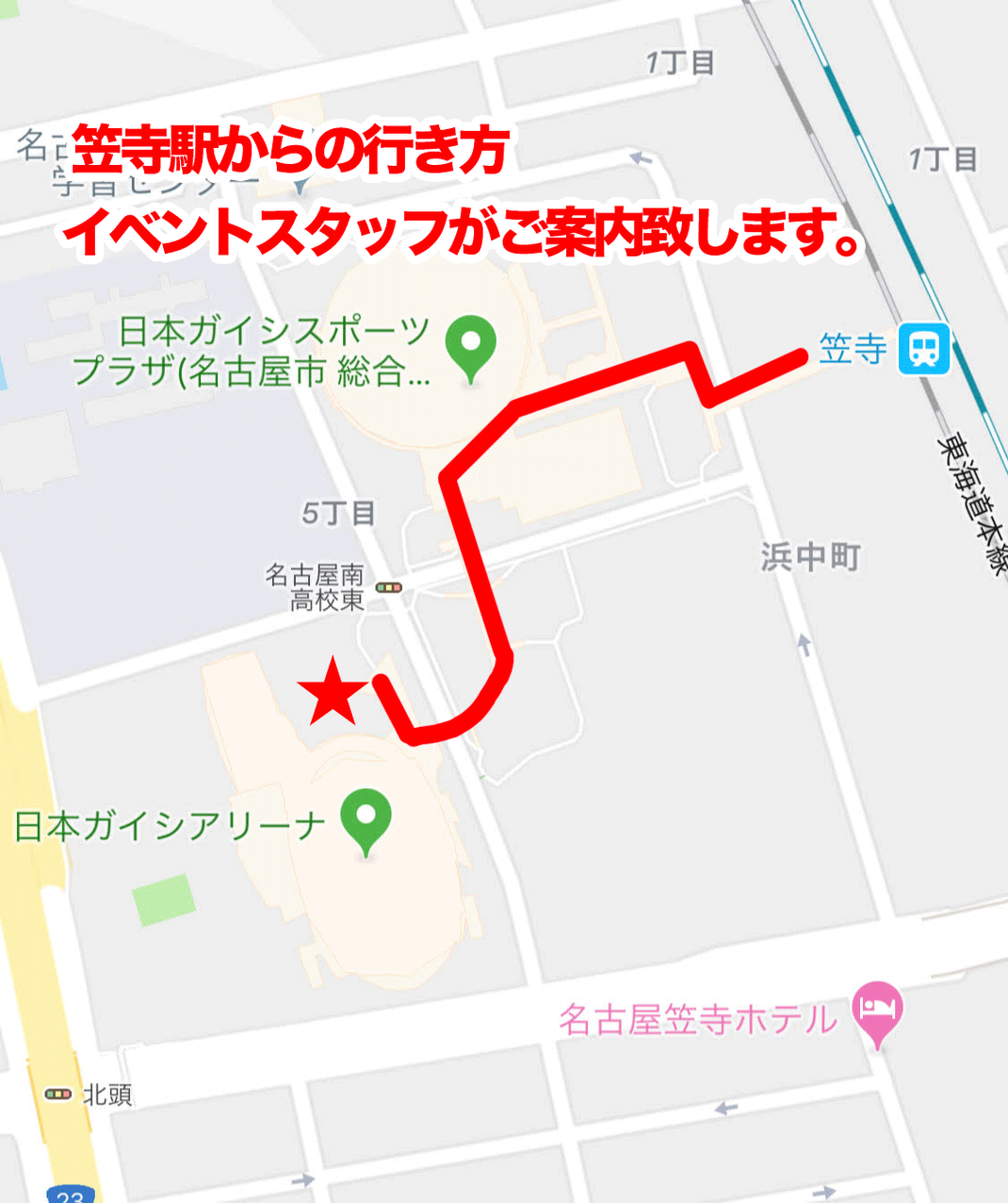 日本ガイシホールの工事期間中のため、通路の見通しが悪くなっておりますが、スタッフがご案内させていただきます。