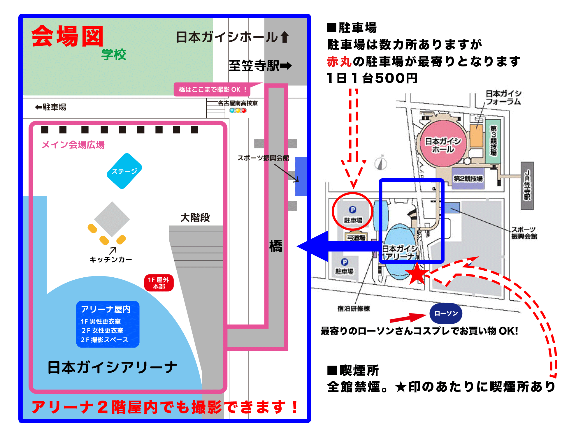 最寄りの駐車場、喫煙所等もこちらをご参考下さい