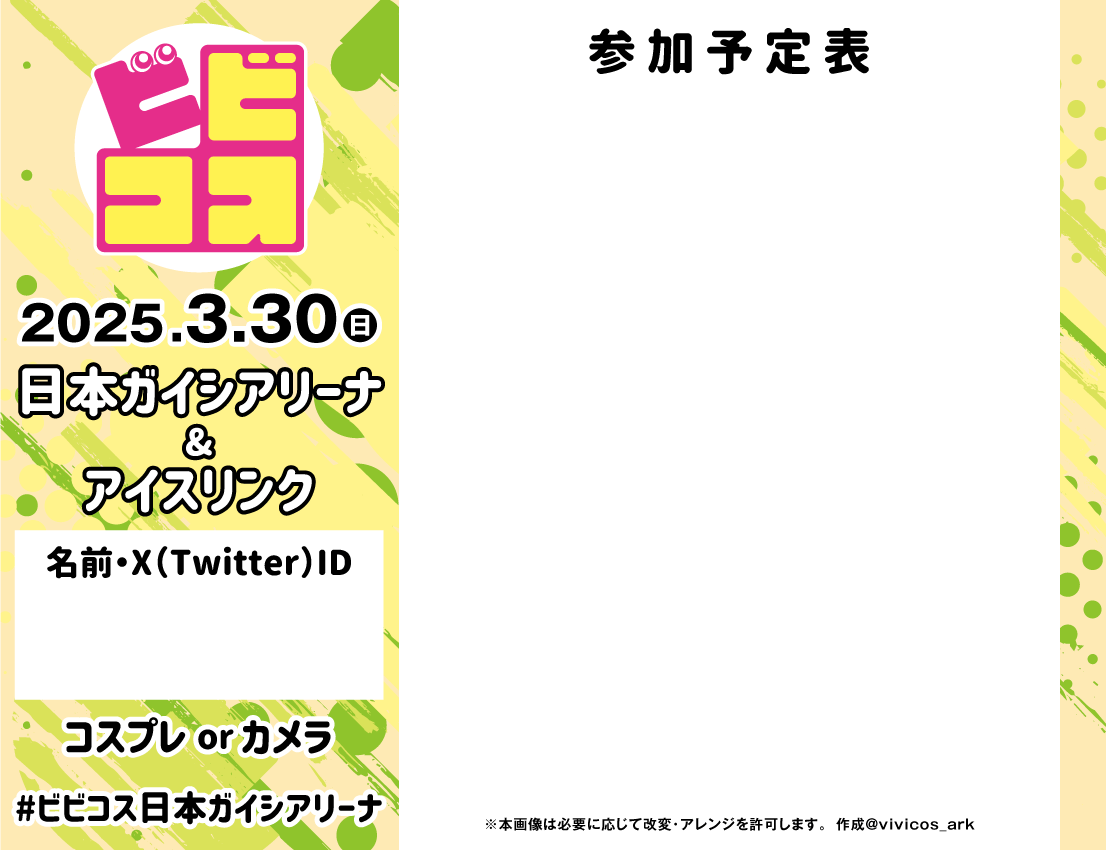 ※イベント別の注意事項とは別に、ビビコスの全イベント共通の参加規約もございますので、合わせてご覧頂けますと幸いです。