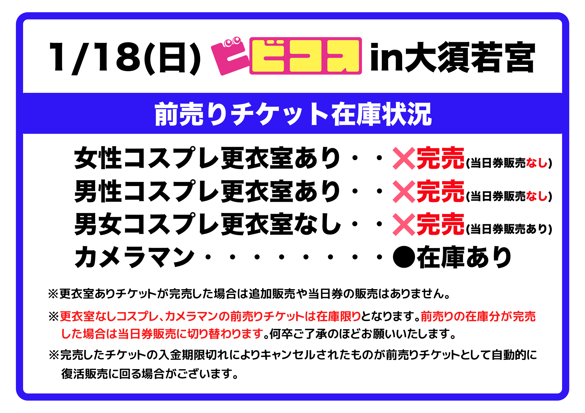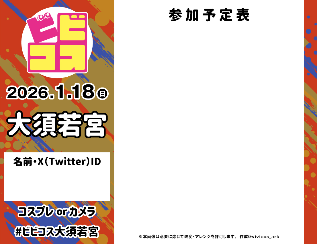 ※イベント別の注意事項とは別に、ビビコスの全イベント共通の参加規約もございますので、合わせてご覧頂けますと幸いです。