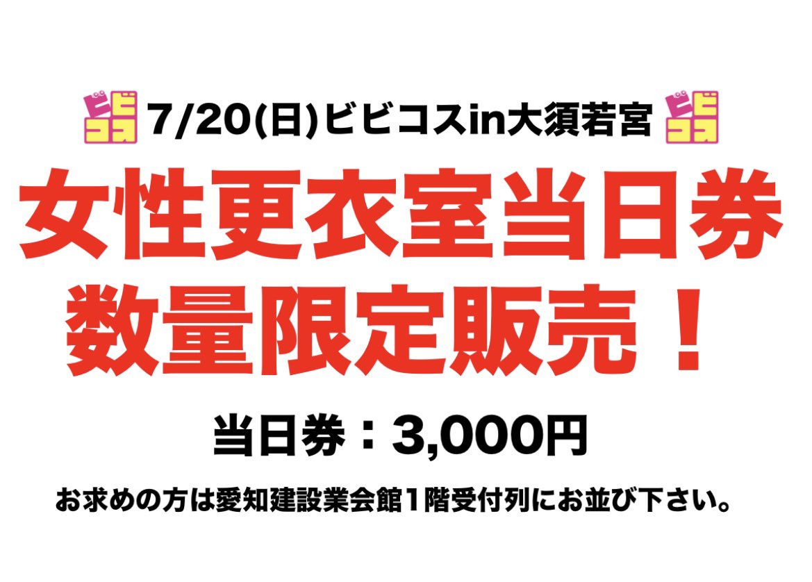 更衣室チケットは前売りの状況で販売無しになる事があります。